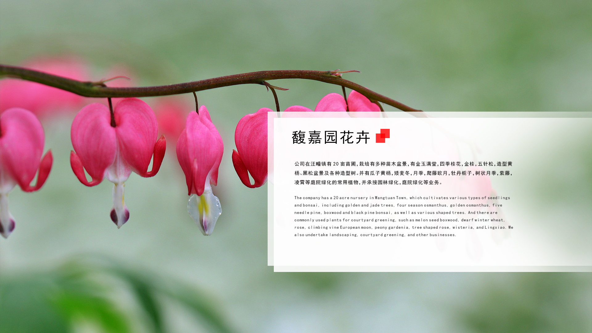 威海市馥嘉園花卉園藝有限公司成立于2009年,十多年來一直致立于花卉事業的發展和創新之中。公司現有花卉苗木基地30多畝,在威海經區老集設有6000多平米的室內外花卉展示基地,建設并使用的現代化花卉溫室3800平米。溫室內展示并銷售多種發財樹,四季發財,天堂鳥,夏威夷竹,平安樹,龍須蘭,大幸福樹等各種綠植,以及多種盆栽苗木、盆景及時令花卉,開業花籃、鮮花等等。公司經營范圍廣泛,現與多家銀行及企事業單位達成綠植租賃服務,公司繼續承接綠植租擺及室內外綠化養護等。